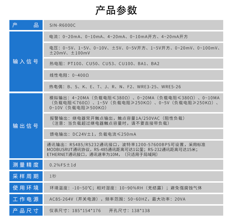 SIN-R6000C系列彩色無紙記錄儀48路萬能輸入(可組態選擇輸入:標準電壓、標準電流、熱電偶、熱電阻、頻率、毫伏等)。可帶18路報警輸出,12個變送輸出,RS232/485通訊接口,以太網接口,微型打印機接口和USB接口,SD卡插座;可提供傳感器配電;具有強大的顯示功能,實時曲線顯示,歷史曲線追憶,棒圖顯示,報警列表顯示。